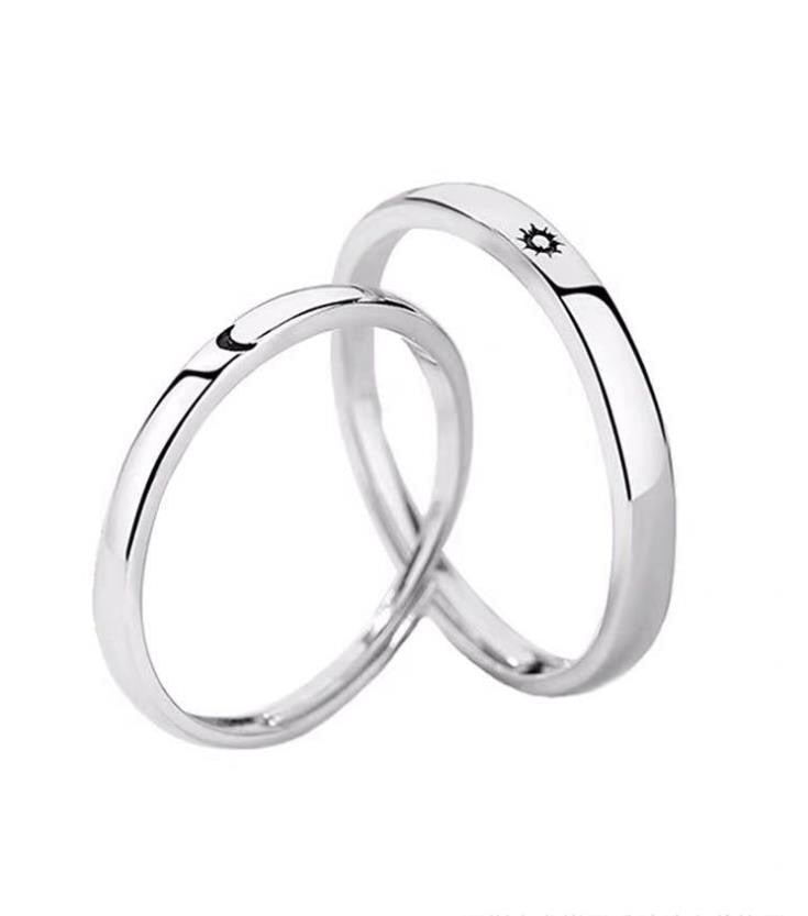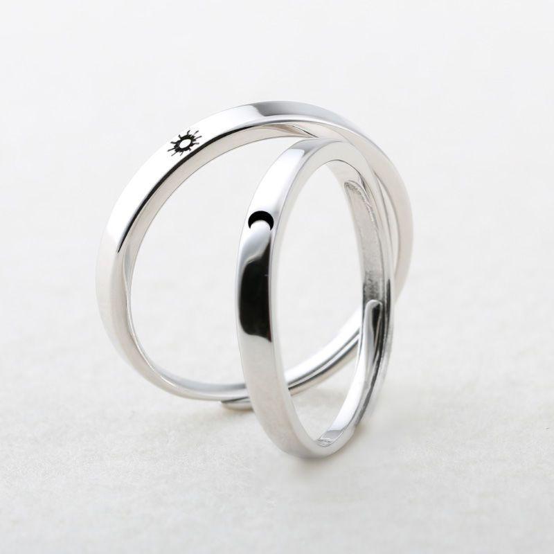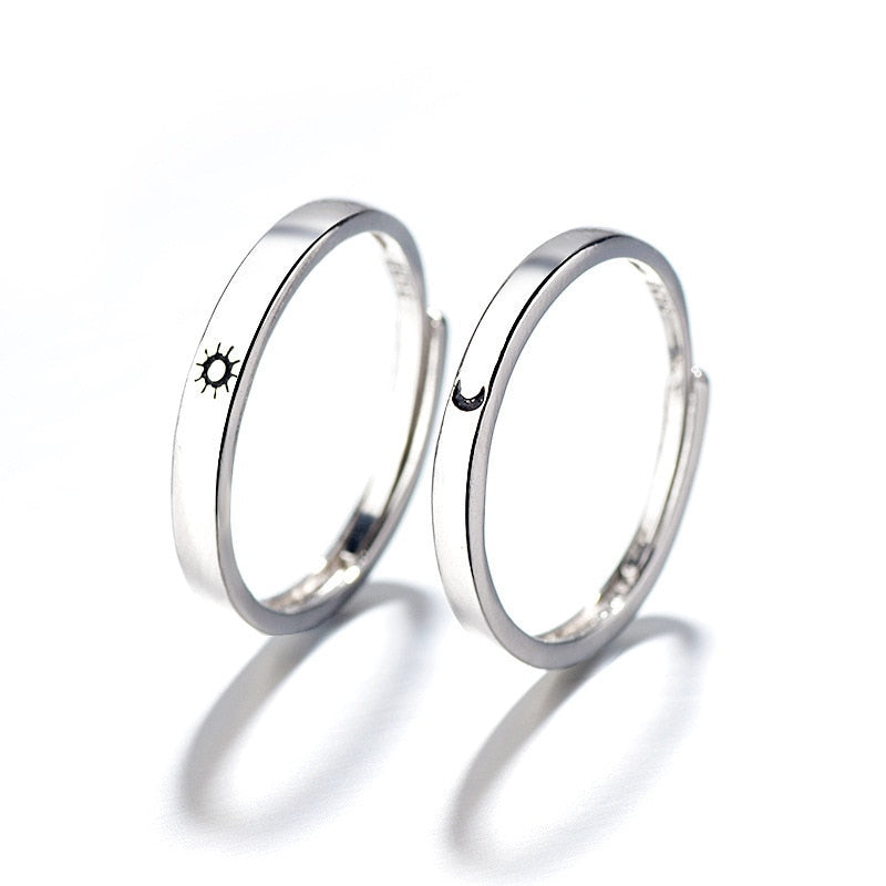 Par de Anéis/Alianças Sol e Lua - Prata 925